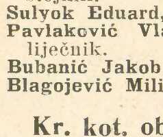Source: 'List of Dignitaries, Officials and Public Servants of the Kingdom of Croatia-Slavonia , year 1917.