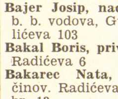 About 20 people with faimily name Bakal live in Croatia today, in 15 households. There were 10 of them in the middle of the past century, and their number doubled.