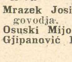 About 10 people with faimily name Osuski live in Croatia today, in 6 households. There were 10 of them in the middle of the past century, and their number remains constant.