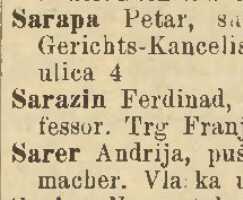 In Croatia, Saražin families are predominantly Croats (from Slavonski Brod ), rarely Slovenes (also from Slavonski Brod ). In the past century, relatively most of Croatian residents bearing this family name were born in Slavonski Brod.