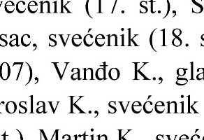 U izvorima do sada obrađenim u projektu Acta Croatica, ime se spominje nekoliko puta, a prvi put 2007. godine u izvoru Enciklopedija hrvatskih prezimena..